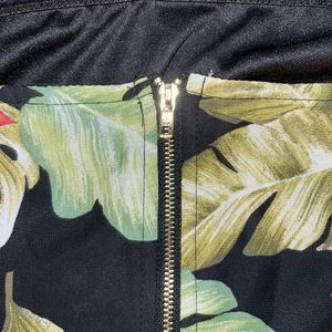 floral print crop top with spaghetti straps and zipper closure in the back