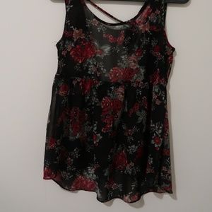 floral print tank top, chiffon fabric, ties in the back, barely worn