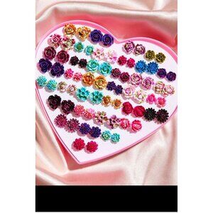 flower stud earring 36 pairs hypoallergenic small rose earring fuchsia neon pink