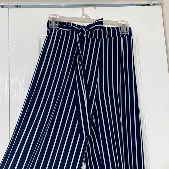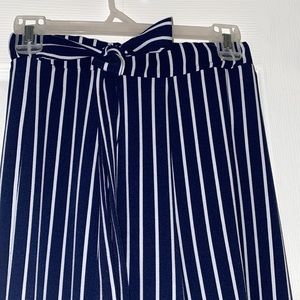 white and blue stripped flowy pants