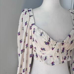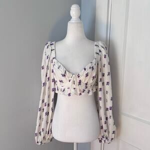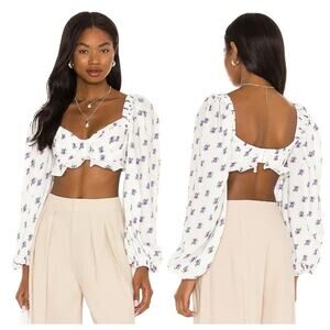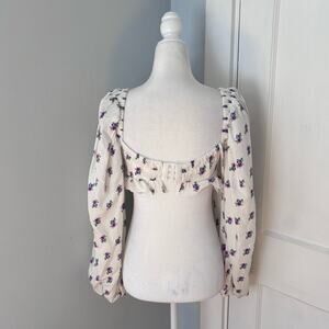 for love & lemons - NWT viola crop top long puff sleeves ruffled trim floral