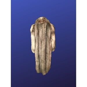 Made of GENUINE FOX FUR that is a rich INDIGO GRAY in color; winged shawl collar; elastic cuffs; inside tie/pocket; German clip closures; leather reinforcements throughout; slash pockets; hanging loop. This MAGNIFICENT full-length INDIGO FOX coat is soft and supple. ALL guard hairs are intact and there is no shedding anywhere on the coat. There are no stains, spots, or odors; no rips, tears, or parted seams; and, there are no threadbare/worn spots anywhere on the garment. There is NO yellowing anywhere on the garment. The lining is in WONDERFUL shape, with the exception of a small pinhole in lining at center hem; some wear at elastic cuffs, but it is from normal wear.