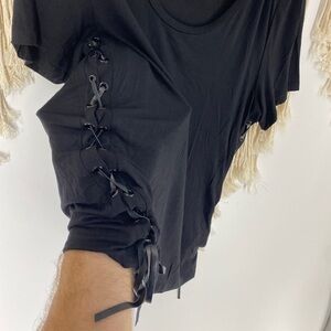 forty four fifty Scoop Neck Lace Up biker T-Shirt