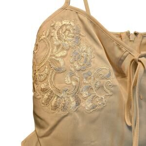 This beautiful crop top features a luxurious satin fabric with delicate floral embroidery. Perfect for adding a touch of elegance to any outfit.