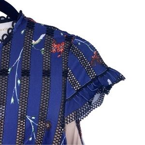 foxiedox Dress Womens Large Blue Bryonia Mini Floral Print Cap Sleeve Lace Party