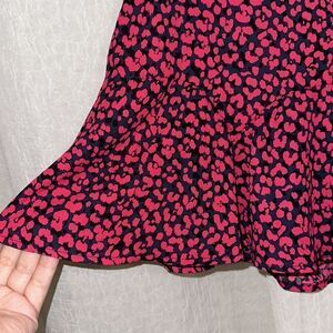 francesca’s M mi ami Godet Pink Animal Print Ruffle Inset Hem Mini Skirt