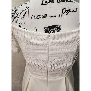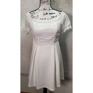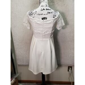 francesca's Mini Dress Women Small White Lace Polyester Boat Neck Lined Back Zip.