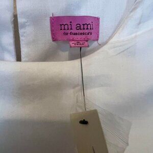 Miami for Francesca’s Elegant white midi dress. Sleeveless design with ruffled hem. Perfect for any occasion. Pockets, lined, & 100% cotton