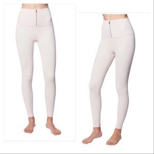 Get your heart rate up in these compressive ribbed leggings. Features include high-waistband with functional zipper, body-sculpting compression, squat-proof design, and a 7/8 cropped length.