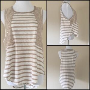 Graphic stripes throughout | Crewneck | Embroidered panels at front | Tonal top stitching and panel seaming | Color: Ivory/Tea | NWT