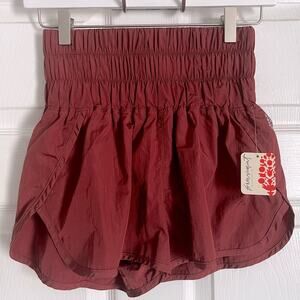 Speed up or slow down in these breezy, warm-up style running shorts, featuring a boldly smocked waistband with a high-rise silhouette and split hem.
