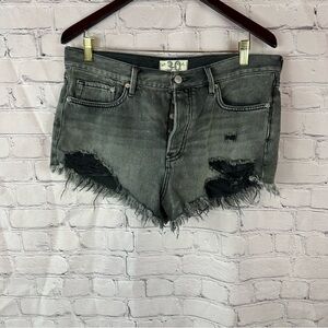 free people We The Free Gray Distressed Jean Shorts sz 30 boho western festival