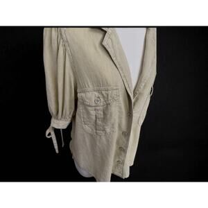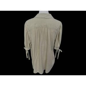 This cute Free People women's button-up top in size large features adorable tie sleeves and is just perfect for casual workwear! It's a great addition to your wardrobe.