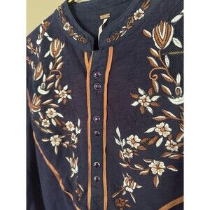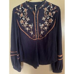 The Free People embroidered Henley Top in size XS is a stylish and versatile piece perfect for any woman's wardrobe. This top features a Western-inspired snap button closure and intricate embroidery details, adding a touch of flair to any outfit. The Henley neckline adds a classic touch while the button accents give it a trendy and unique twist. Whether dressed up or down, this top is sure to make a statement and elevate any ensemble.