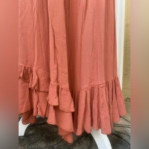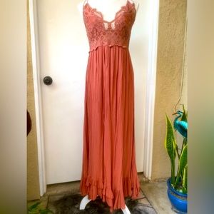free people one adella salmon lace rayon tiered ruffled gauze maxi sz m