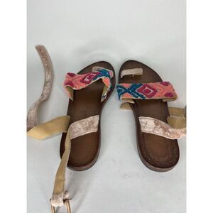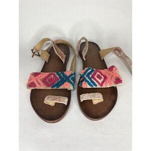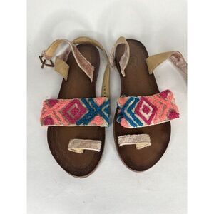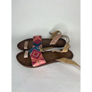 Add some boho chic to your wardrobe with these Free People sandals. The multicolor design and strappy style make them perfect for any occasion. They are available in women's US shoe size 8 and EU shoe size 39. The upper material is made of fabric, providing comfort and durability. These sandals are a great addition to any fashion-forward woman's collection.