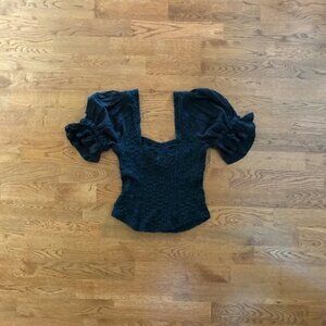 free people spring fling black blouse peasant puff sleeve sweetheart neck lace