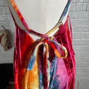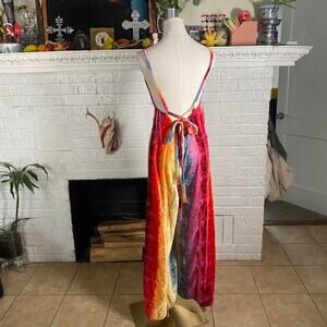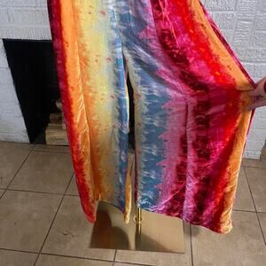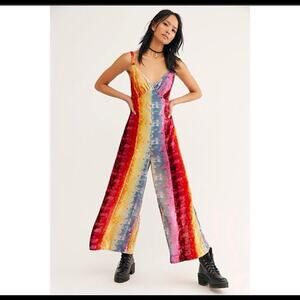 Y2K Free People Velvet wide leg rainbow jumpsuit romper. Has ajustable tries on the back including a back zipper