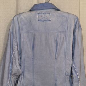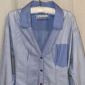 free people M-L Blue Chambray Denim Vintage Wash Distressed Shirt Tunic