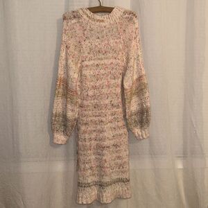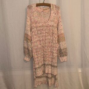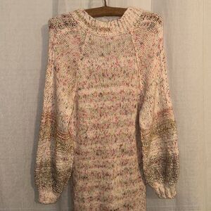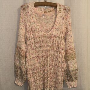 free people XS High Low Confetti Cable Knit Balloon Sleeve V-Neck Sweater