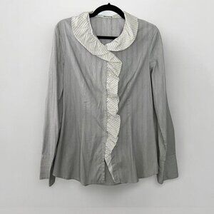 frilly pinstripe ruffle button up office wear shirt