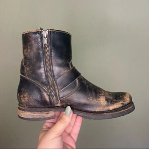 frye Veronica Belted Distressed Short Boots. Size 6
