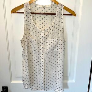 Fun, nautical anchor print throughout Two breast pockets Silky polyester fabric EUC, gently worn