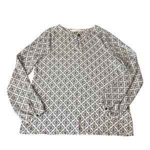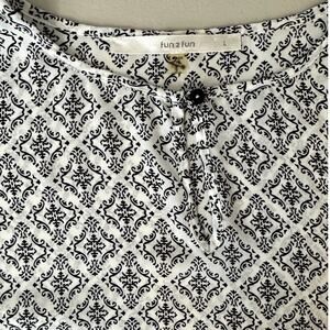 fun2fun Women's White and Black Patterned Peasant Blouse Size Large NWOT