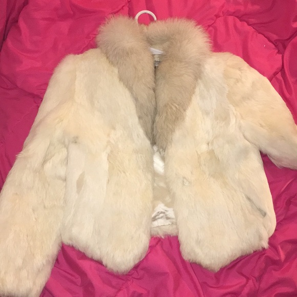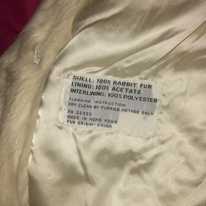 white fur coat. super cute and trendy. theres pockets in it. and the lining on the inside makes it feel comfy. size M but can fit a S. only worn for pics. i originally bought for 180$