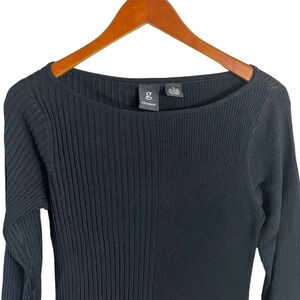 g Knitwear Black Pullover Top Size Medium Alternating Ribbed Stripes Pattern