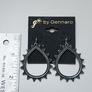 g by Gennaro Teardrop Hoop Dangle Earrings Silver Tone with Turquoise Color Accents. Shepherd hook back.