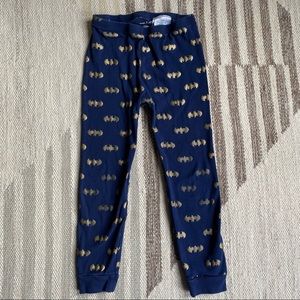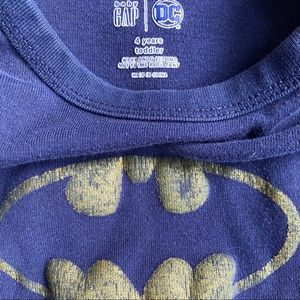 Gap and DC Comics navy and gold Batman long sleeve shirt and pants pajama set. See photos for signs of wash & wear including a tiny hole. Unisex, 4T.
