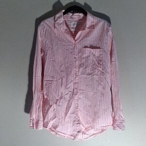 Oversized Boyfriend Pink White Striped Button Down Shirt