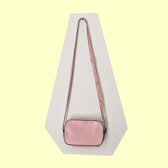 pink gap bag, pocket on inside slight wear on thread by zipper, otherwise new condition