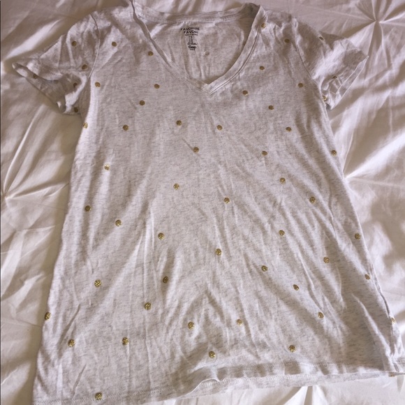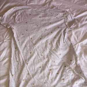 light grey top with gold, glittered polka dots! has v-neck. women’s small