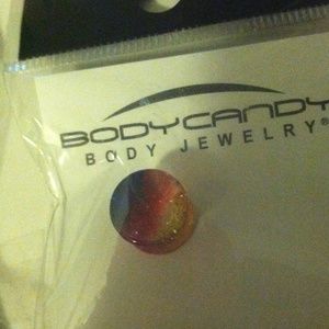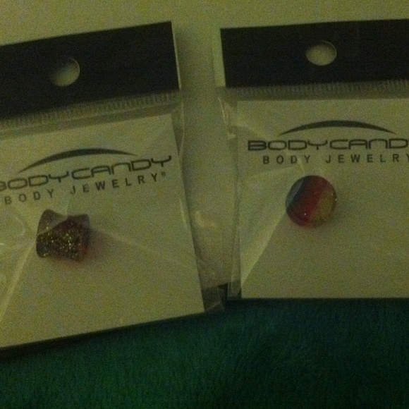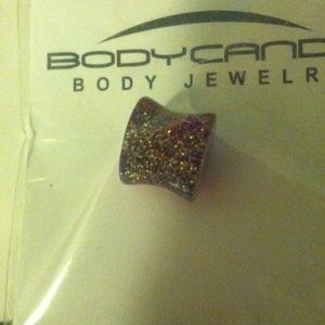 double flared gauges. yellow, red, blue sparkle pattern! never worn! still in original packaging!