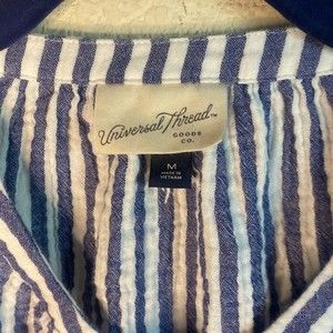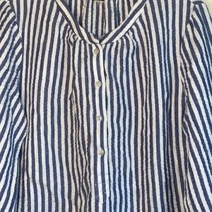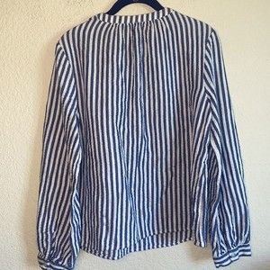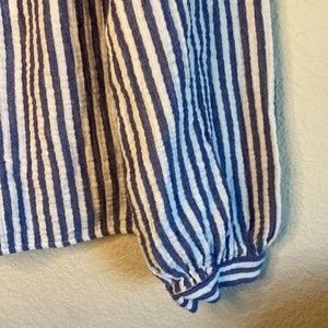 gauze boyfriend waffle striped long sleeve button M women blouse shirt