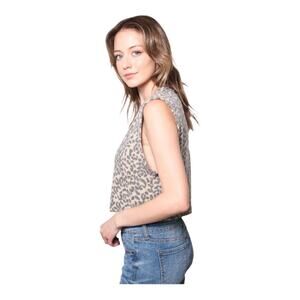 gaze NWT Women's Crop Fuzzy Animal Print Button Front Sweater Vest Top Camel SM