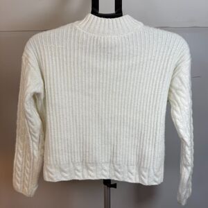 gbGIRLS Cable Knit Ribbed Sweater White Girls Size L Pullover, Mock Neck
