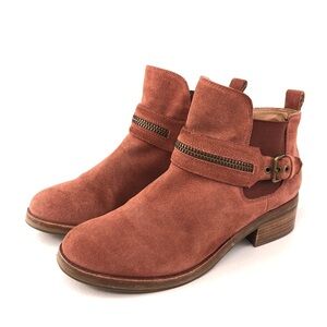 Suede leather upper. Leather lining. Rubber sole. Side zip closure. 1.5" leawood wrapped heel. Memory foam footbed with arch support. Shaft approx 5.5"
