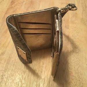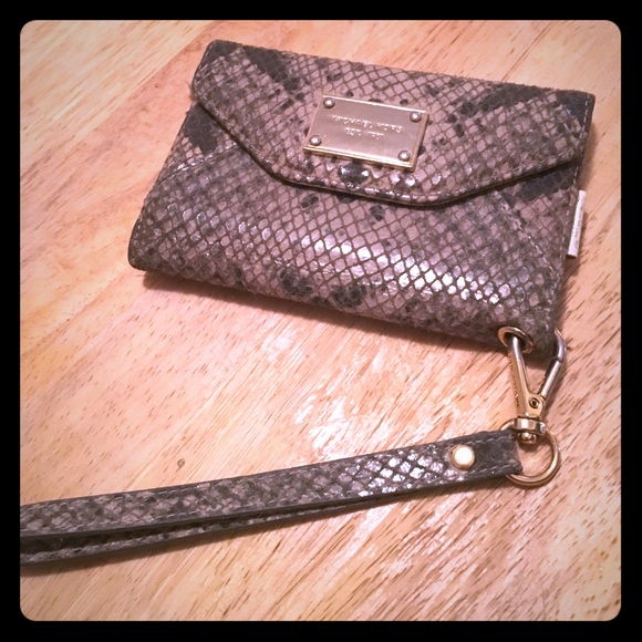 Beautiful leather wallet/clutch made for iPhone 4 and SE. This was $80 retail and looks awesome even if used as only a clutch or wallet!! Some signs of use on inside. Holds credit cards , phone, cash, etc. Authentic MK, smoke free home, gorgeous little wallet!