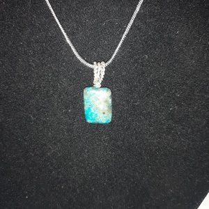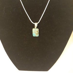 genuine hand made 3/4" turquoise pendant with silver wire loop & 925 chain.