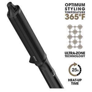 Featuring an innovative, ceramic-coated, tapered barrel with a 1" base and oval .9" tip, perfect for versatile styling. Includes ultra-zone technology that monitors heat 250x a second for shiny, long-lasting results, personalized to you. Comes with a heat protect glove and cool tip for safe styling.
