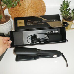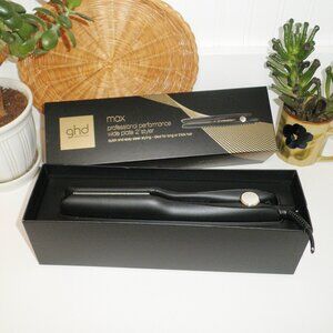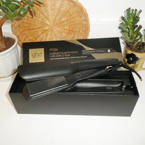 Discover the max styler - our wide plate, 2" professional performance styler with dual-zone technology and 70% larger plates.* Harnessing two new generation heat sensors for consistent heat distribution, the new ghd max flat iron is ideal for styling long, thick and curly hair types in half the time.** Enjoy 80% more shine† and up to 2x less frizz†† for a long-lasting, salon-quality finish. For up to 3x less frizz††, pair the ghd max styler with the ghd straight on - straight & smooth spray.