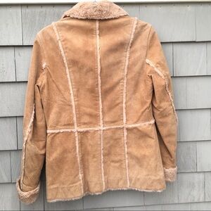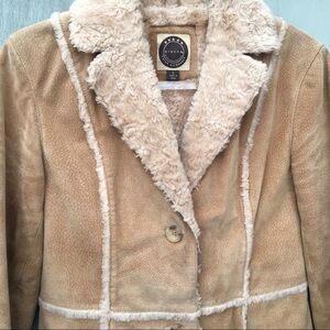 giacca Vintage Tan Penny Lane Daisy Leather Suede Coat With Faux Fur Trim Small