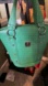 Stylish MCM tote bag. Features vibrant green color. Silver hardware accents. Perfect for everyday use.