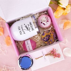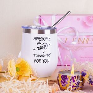 12 oz Insulated Stainless Steel Wine Glass Set, Ladies Birthday Gift, Unique Gift Basket for Best Friends, Mom, Wife, Friendship - Personalized Thank You Spa Gift Set
