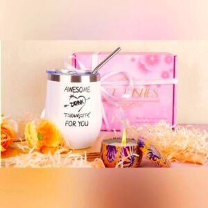 12 oz Insulated Stainless Steel Wine Glass Set, Ladies Birthday Gift, Unique Gift Basket for Best Friends, Mom, Wife, Friendship - Personalized Thank You Spa Gift Set