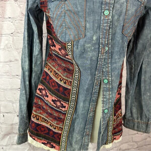 gimmicks by BKE boho western top sz small lace hem southwestern tapestry