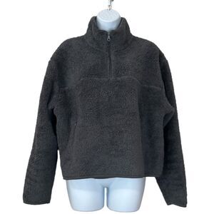 Workout, fleece, Sherpa, charcoal gray, zip up, pullover, cozy, warm, comfy, comfortable, boxy, cropped, crop, yoga, hiking, athletic, athleisure